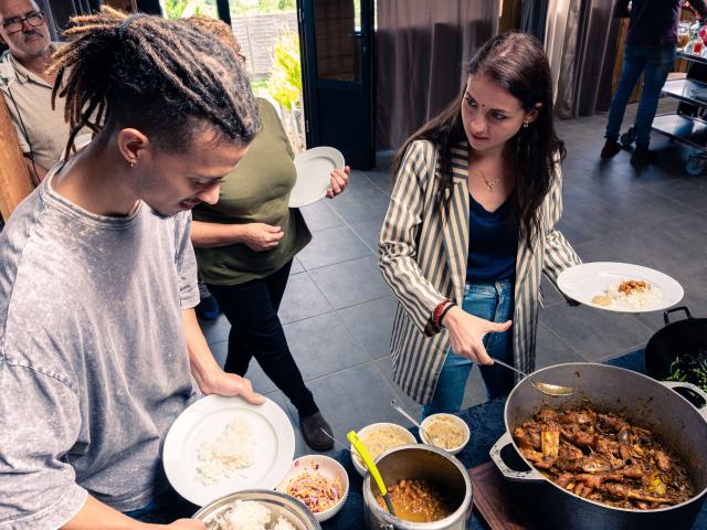 Après le café et le dessert qui a fait la part belle aux gâteaux péi, laissez-vous tenter par une initiation au Séga ou au Maloya pour conclure votre expérience sur une note festive. Julie et Varadan vous raconteront même l’histoire des musiques traditionnelles de l’île.