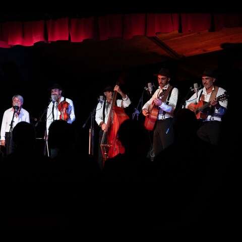 Puis, les membres du groupe nous invitent à continuer l’expérience dans l’espace cabaret, pour un intermède musical. Dès les premières notes, nous plongeons dans leur univers musical si particulier. Les mélodies entraînantes, fusion de danses d’antan telles que la valse, la polka, le scottish ou le quadrille, agrémentées de rythmes séga, sont portées par un ensemble d’instruments variés. La guitare, la contrebasse, le violon et les percussions jouent en harmonie.