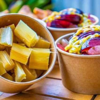 Le repas principal est une ode à la cuisine réunionnaise. Rougail saucisses savoureux, riz frit réunionnais parfumé, riz chauffé à la morue, poisson rôti accompagné de ses condiments – chaque bouchée est un voyage. Les épices réveillent nos papilles, les saveurs sont équilibrées et authentiques. Le tout est servi dans des contenants recyclables, avec des couverts en bois : ici, le respect de l’environnement est aussi une priorité. Il n’y a pas à dire, j’ai rarement mangé aussi bien lors d’un pique-nique à la plage.